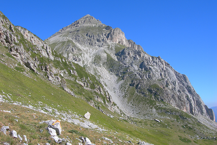 Magnifica e tranquilla escursione in una delle più belle valli glaciali del Gran Sasso; meravigliosa la vista sulle monolitiche Spalle del Corno Piccolo e verso la Sella dei Due Corni, il Corno Grande, il Pizzo d’Intermesoli, il Pizzo Cefalone, il Monte Portella.