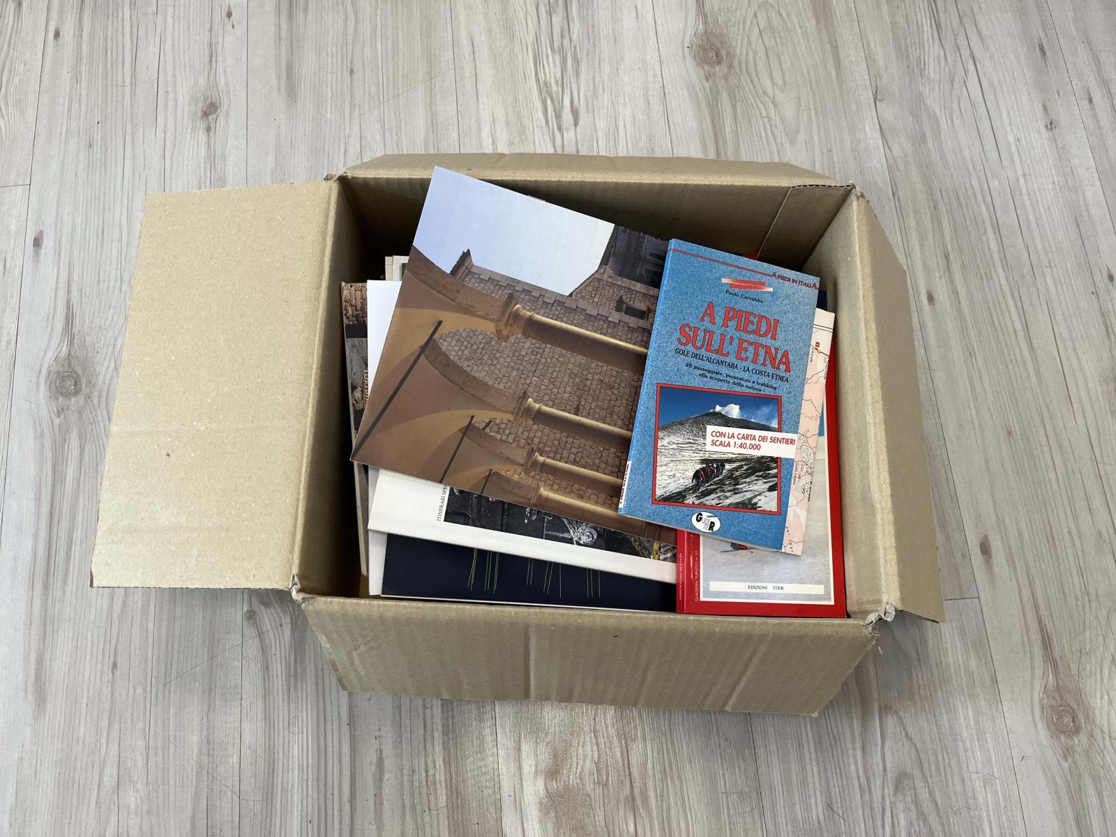 Compressa, soffocata in uno scatolone fra libri di cucina, gialli, romanzi rosa e persino settimane enigmistiche! Non è il mio posto: io sono una guida, dovrei essere in salotto sullo scaffale della libreria dedicato ai libri di montagna. Oppure nello zaino, pronta ad essere usata sul campo.